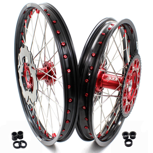 KKE 21/18 21/19 MX Wheels Rims Set For Honda XR400R 1996-2004 XR600R 1991-2000 Red Nipples