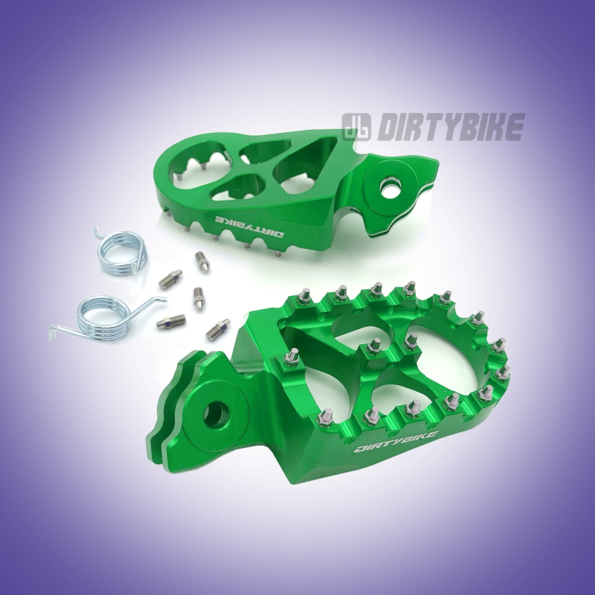 These durable pegs feature aggressive bite for extra grip and stability when off road riding, racing or any other extreme conditions. Works with stock springs.