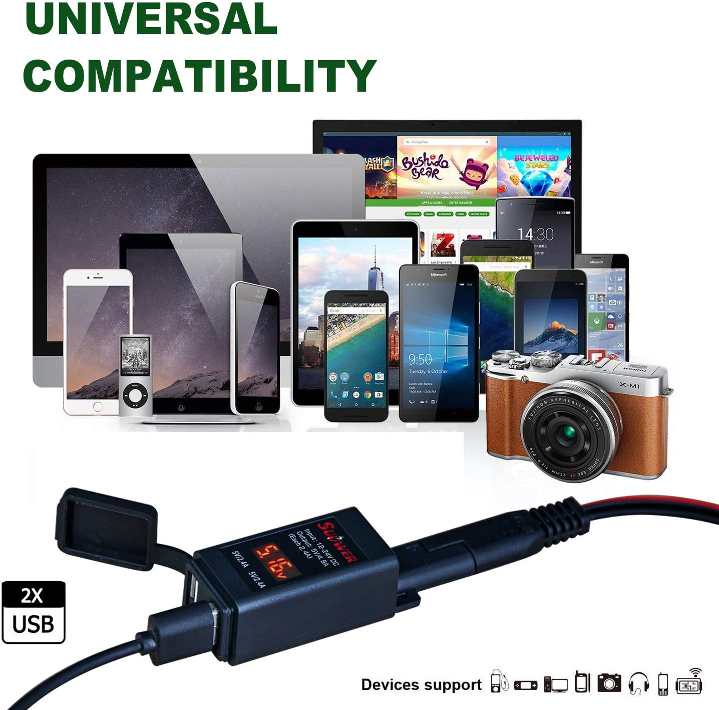 - Weatherproof Design: Includes an attached cover to protect the USB ports from water, dust, and dirt, ensuring reliable performance in all conditions.